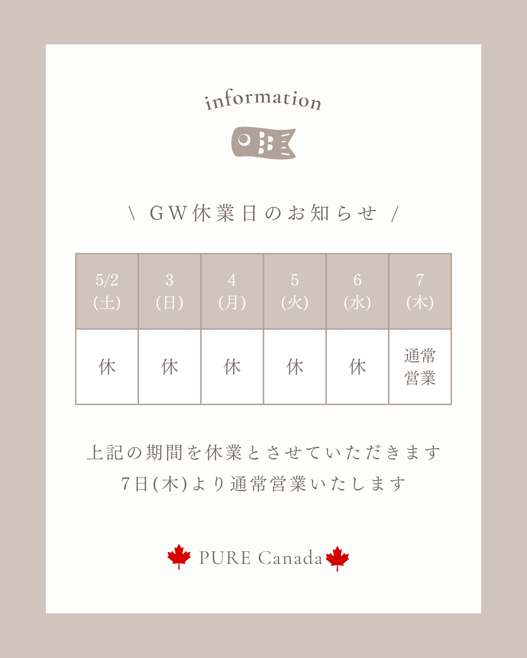 🌼2026年GW休暇のお知らせ🌼